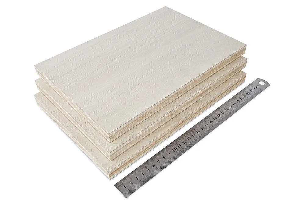 Standard size of a plywood sheet is 2440 x 1220 mm, with thicknesses ranging from 3 mm right up to 40 mm for birch plywood.