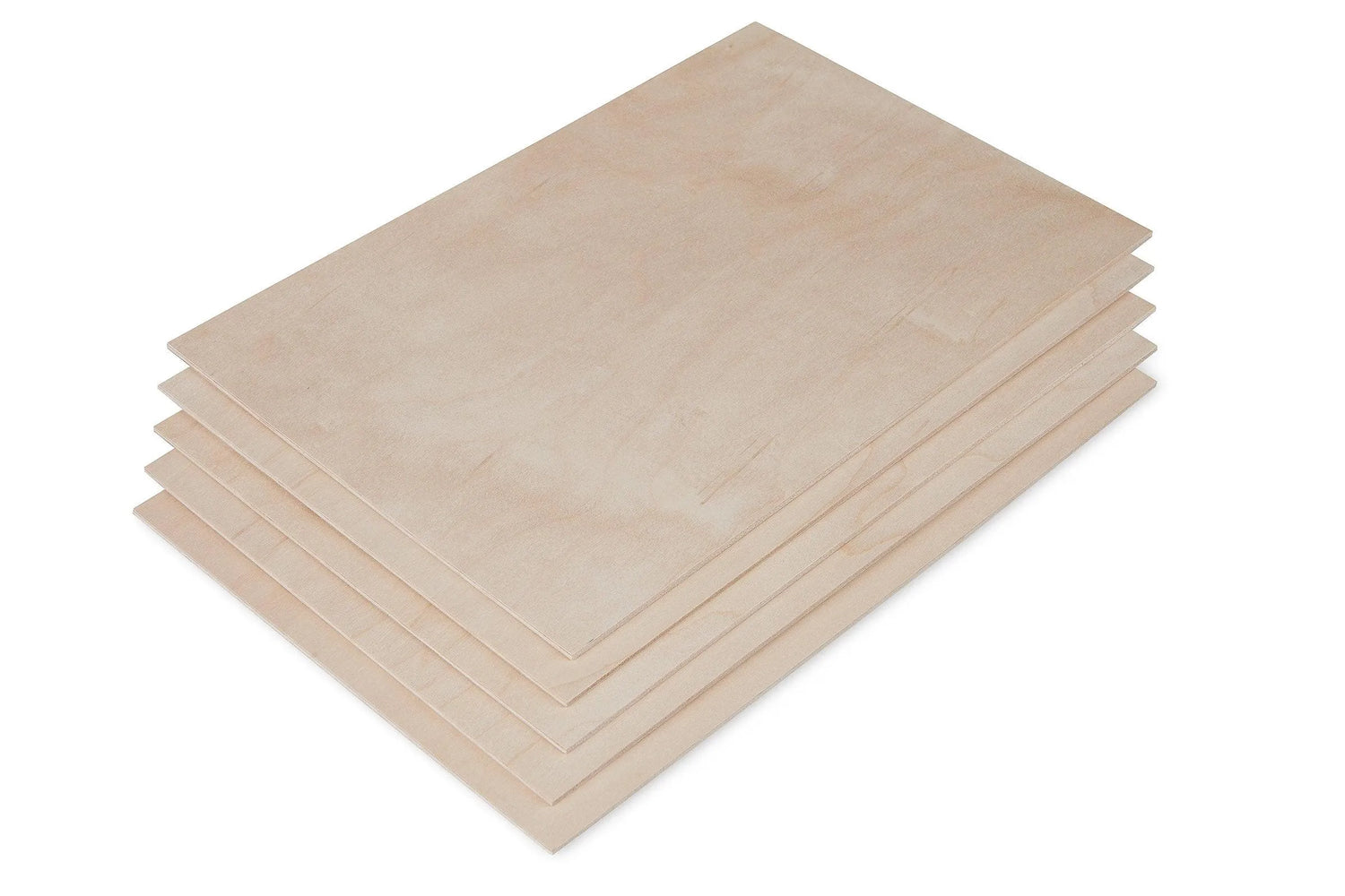 Standard size of a plywood sheet is 2440 x 1220 mm, with thicknesses ranging from 3 mm right up to 40 mm for birch plywood.